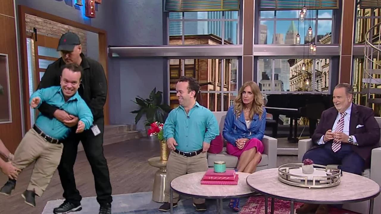 Nuestro productor alardeó en pleno show con su nuevo 'juguete', una estatua idéntica a él que hasta puede correr.