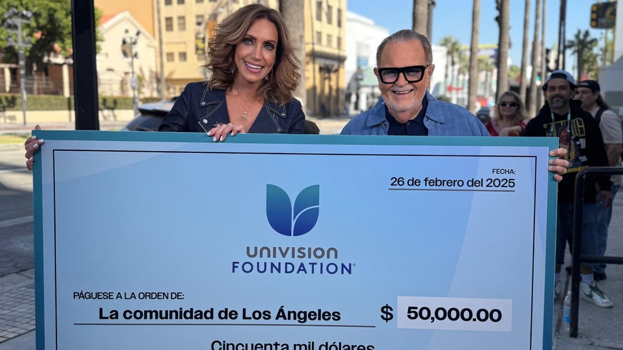 Los conductores de El Gordo y La Flaca, quienes recibirán su estrella en Hollywood, entregaron un cheque por $50,000 en nombre de Univision Foundation para apoyar a la comunidad de Los Ángeles y que será distribuido a diferentes organizaciones locales.