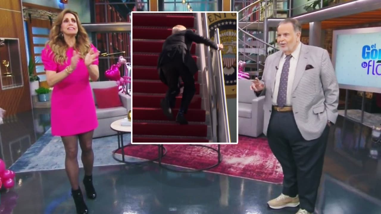 El presidente tuvo la mala fortuna de tropezar no una, sino tres veces, cuando subía las escalerillas que conducen a la puerta del avión presidencial. El Gordo y La Flaca analizaron el video del momento de las caídas y comentaron la explicación que dieron los voceros de la Casa Blanca de que el viento fue factor para que trastabillara.