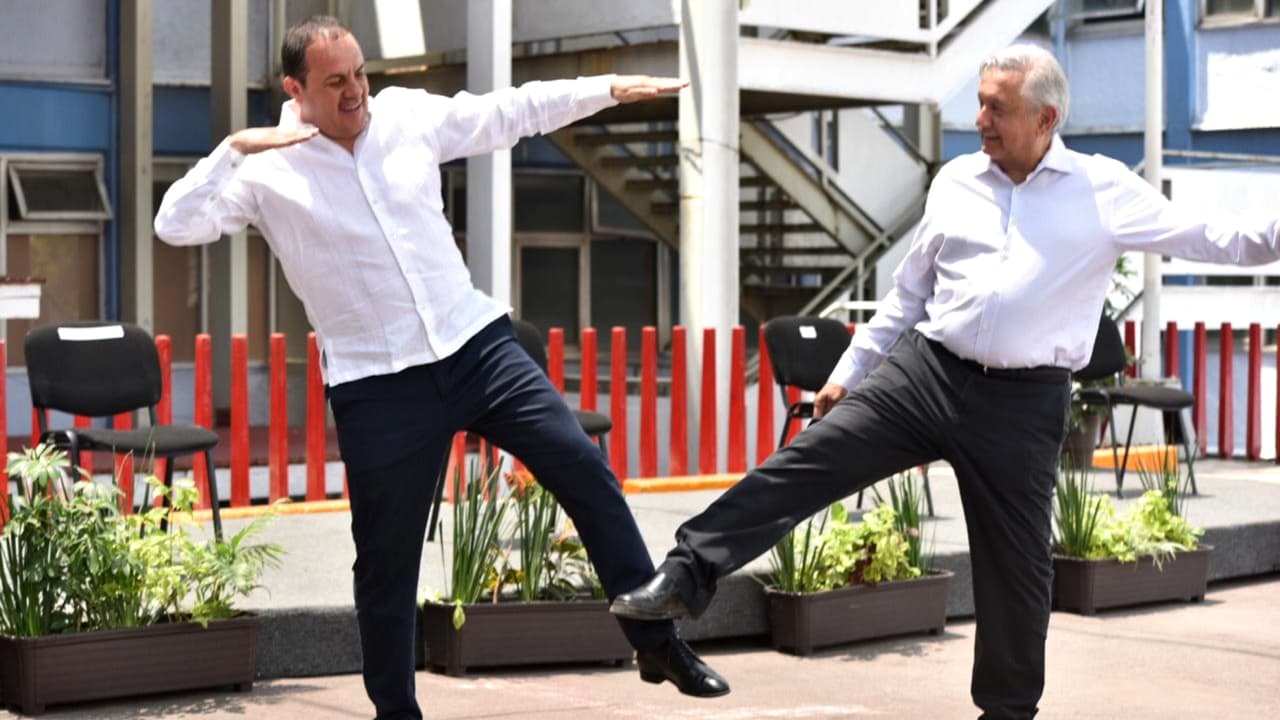 López Obrador y Cuauhtémoc Blanco reinventan el festejo de la 'cuauhtemiña' para evitar darse la mano
