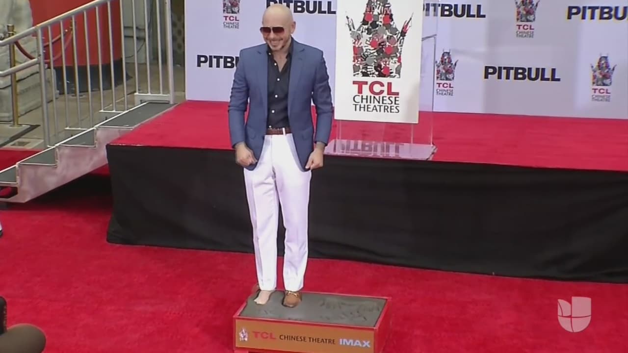 Pitbull plasmó sus huellas en cemento e hizo historia en el legendario Teatro Chino