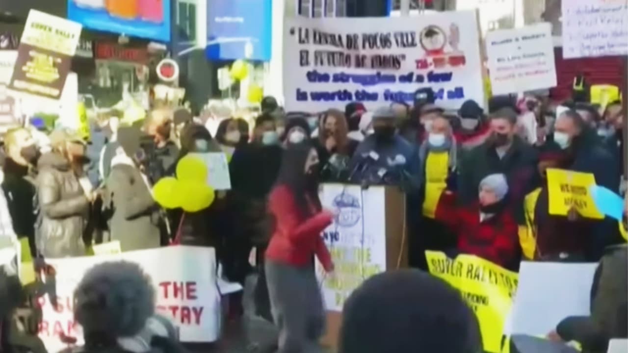 Protestan en Nueva York dueños, empleados y clientes de restaurantes por el cierre de estos negocios