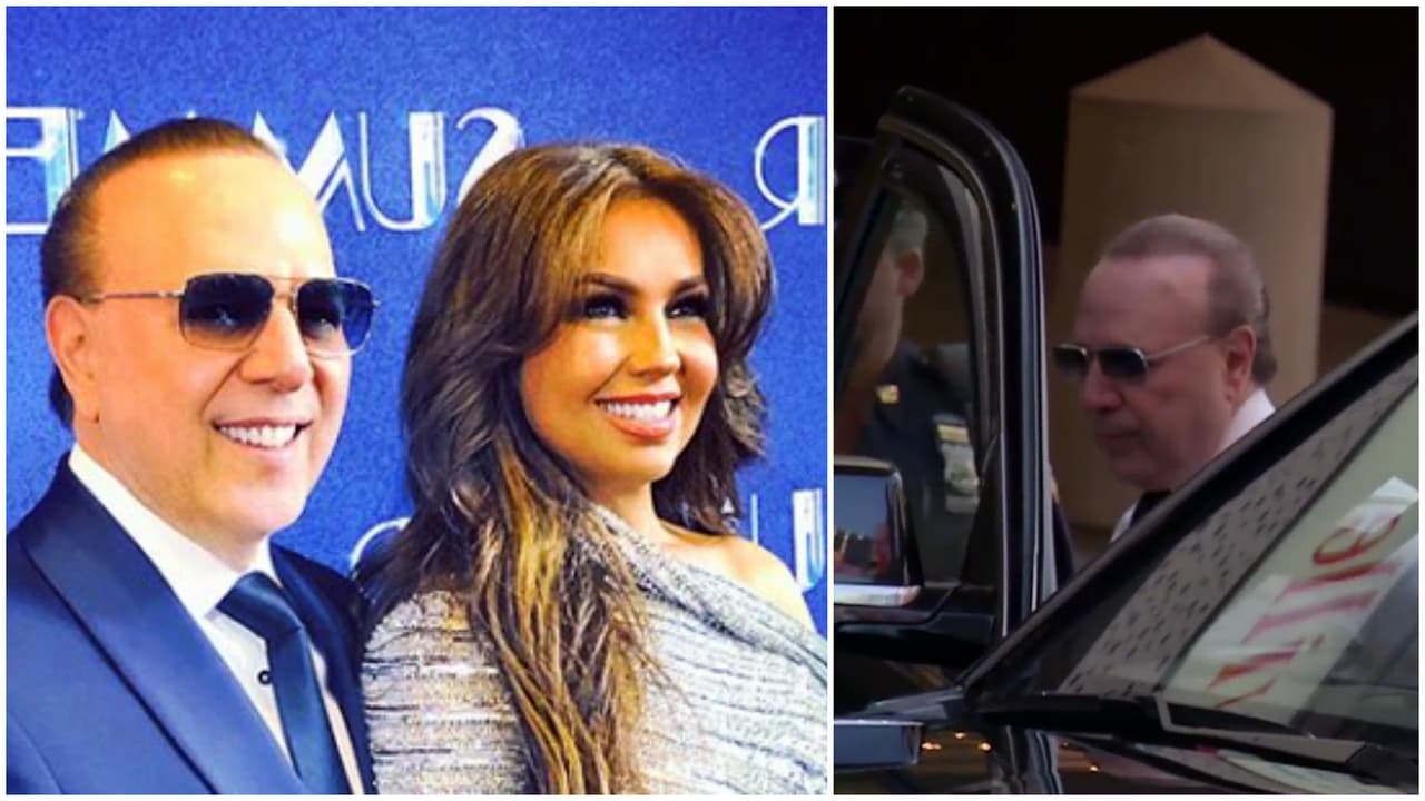 Tommy Mottola acompañó a su esposa al estreno de 'Summer: The Donna Summer Musical', y aunque minutos antes tuvo que cambiarse de camisa, Thalía nos reveló qué fue lo que pasó.