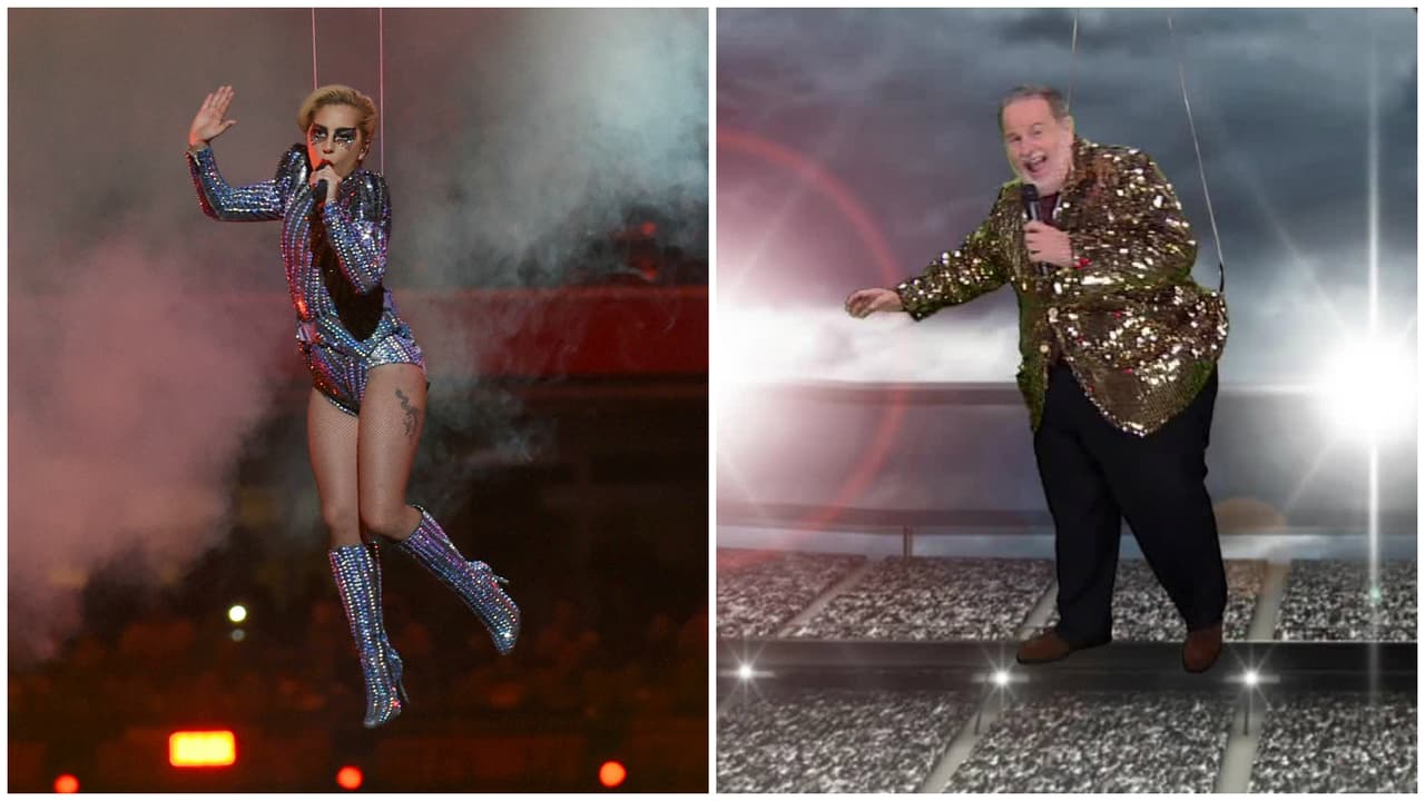 Después de la impresionante presentación de Lady Gaga en el Super Bowl 2017, Raúl no se quiso quedar atrás y trató de imitarla.