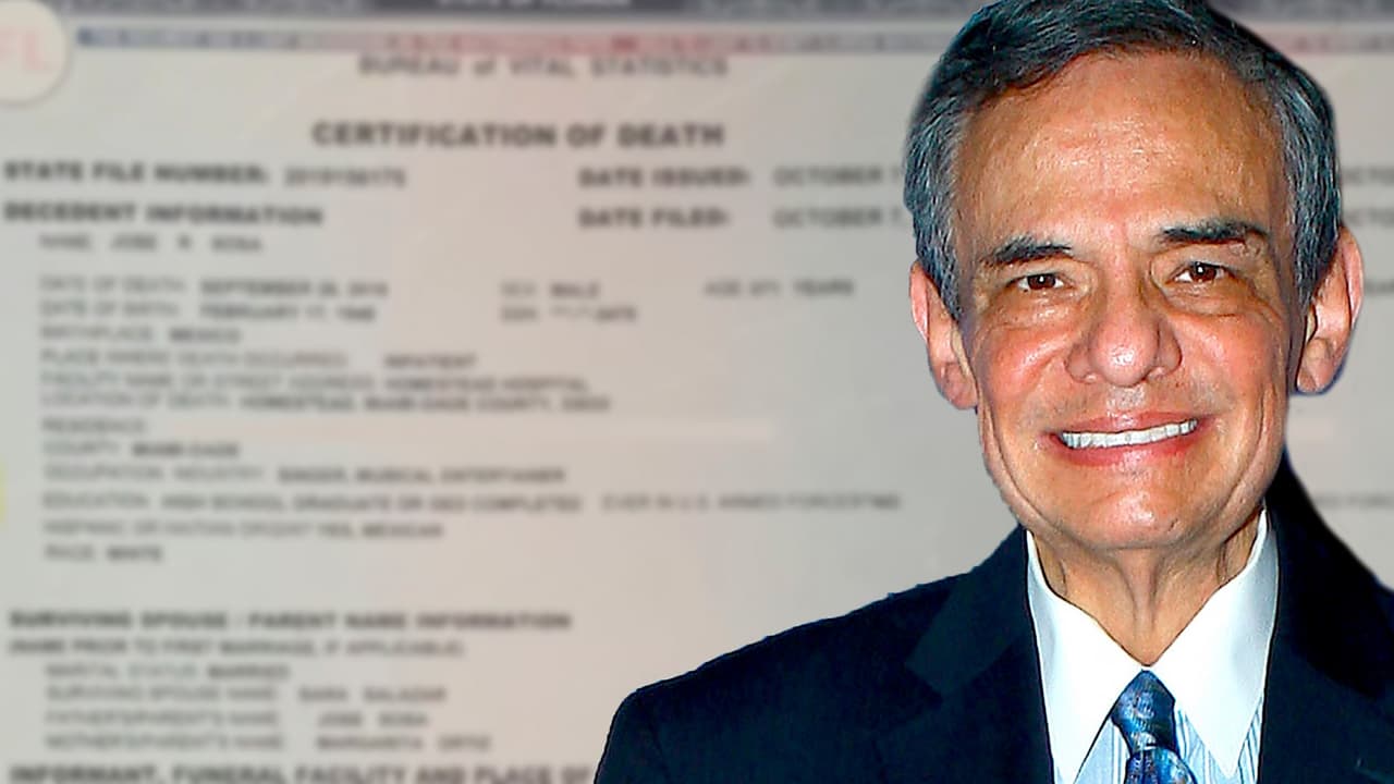 Se dio a conocer el documento que certifica la muerte de 'El Príncipe de la Canción' emitido por el estado de Florida. En el acta se lee que el intérprete murió el 28 de septiembre en el hospital Homestead mientras recibía un tratamiento. En el documento se estableció que el cantante sería cremado.