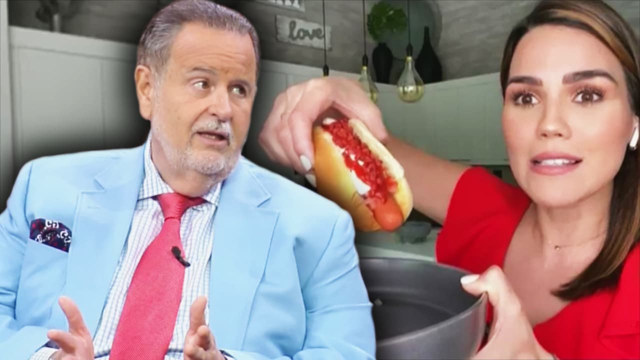 Tras escuchar que a El Gordo le encantan los perros calientes de Nueva York, la reportera compartió desde su hogar la receta especial con tocino que le prepara a su novio. Sin embargo, nuestro presentador no tardó en prevenir a Karina de que el actor podría alcanzar su talla si ella sigue cocinándole así todos los días.