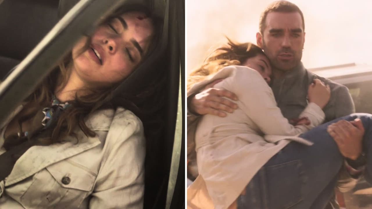 En ese mismo instante Rodrigo apareció para apresurarse a salvar a la doctora. Repleto de valentía enfrentó el fuego y llevó entre sus brazos a Amelia, quien al reaccionar vio a Rodrigo con asombro. Sin embargo, una explosión rompió su cruce de miradas.