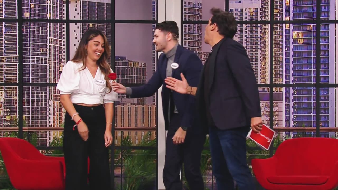 Ginella llegó al show con nerviosismo por conocer al mexicano, quien le ha dado flores a sus flechadas después de decirles "que no, que no". Tras conocerla, Miguel planeaba la misma maniobra, sin embargo, nuestro conductor actuó más rápido y en cambio le dio un ramo completo a la joven, además de un consejo al amoroso.