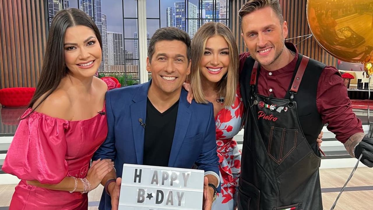 El equipo de Enamorándonos sorprendió al presentador, quien el 18 de septiembre festejará un año más de vida. Ana Patricia, Migbelis y Pietro no pasaron por alto la fecha, pues Rafa es "el gran capitán" del programa, tal y como lo describió su compañera de set.