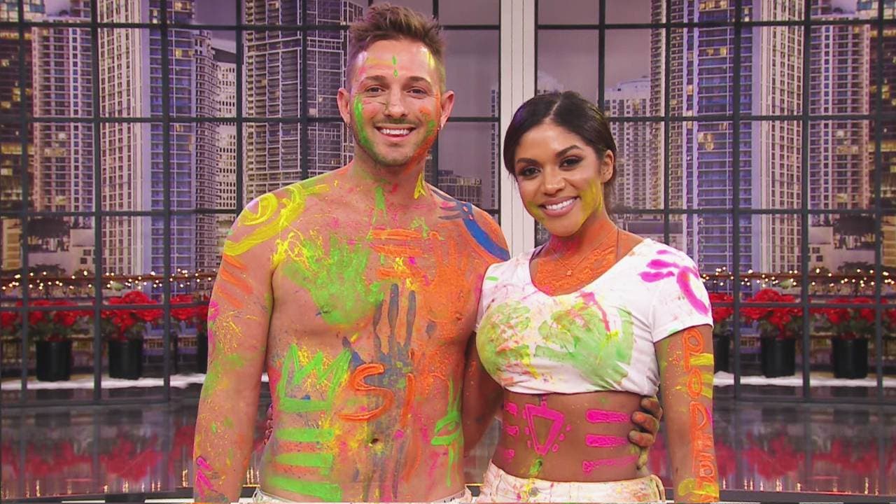 El estudio y esta parejita se llenaron de colores, pues ambos se convirtieron en un lienzo humano en el que expresaron su poderosa personalidad. Con pintura y la ayuda de un antiguo amoroso, Awilda le dio el "que sí, que sí" más artístico a su flechado.