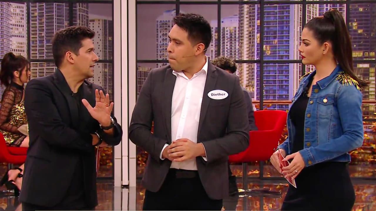El amoroso quería que su enamorada de Instagram apareciera en el programa, pero no llegó y Rafa y Ana Patricia le notificaron que si buscaba el romance en las redes sociales no podía ocupar un lugar en el palco. Así que Diether lo pensó mejor.