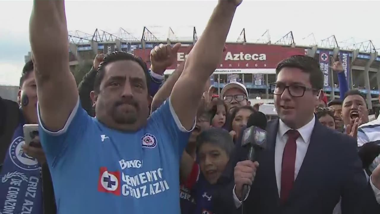 Mientras esperan la hora cero para el inicio de la Semifinal de vuelta, los hinchas de La Máquina se aglomeran en las afueras del Estadio Azteca y le envían mensajes de apoyo a su equipo.