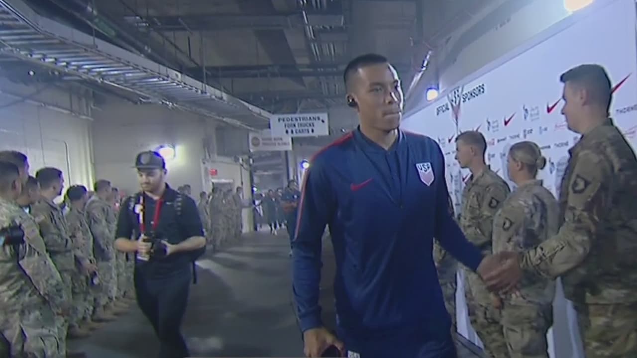 Un grupo de militares recibieron a la selección de Estados Unidos en el estadio de Nashville donde diputarán el juego contra México. Los soldados harán un homenaje, tras cumplirse los 17 años del atentado terrorista 11-S en EEUU.