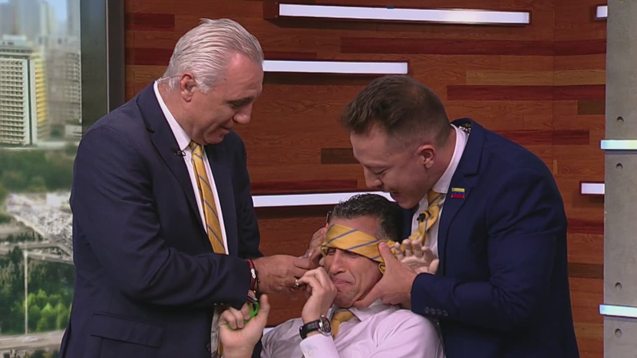 Por votación de sus compañeros de Fútbol Club y colegas de Línea de Cuatro, el 'Gato' debió beber un misterioso líquido y así lograr el premio que le tenía el exfutbolista búlgaro.