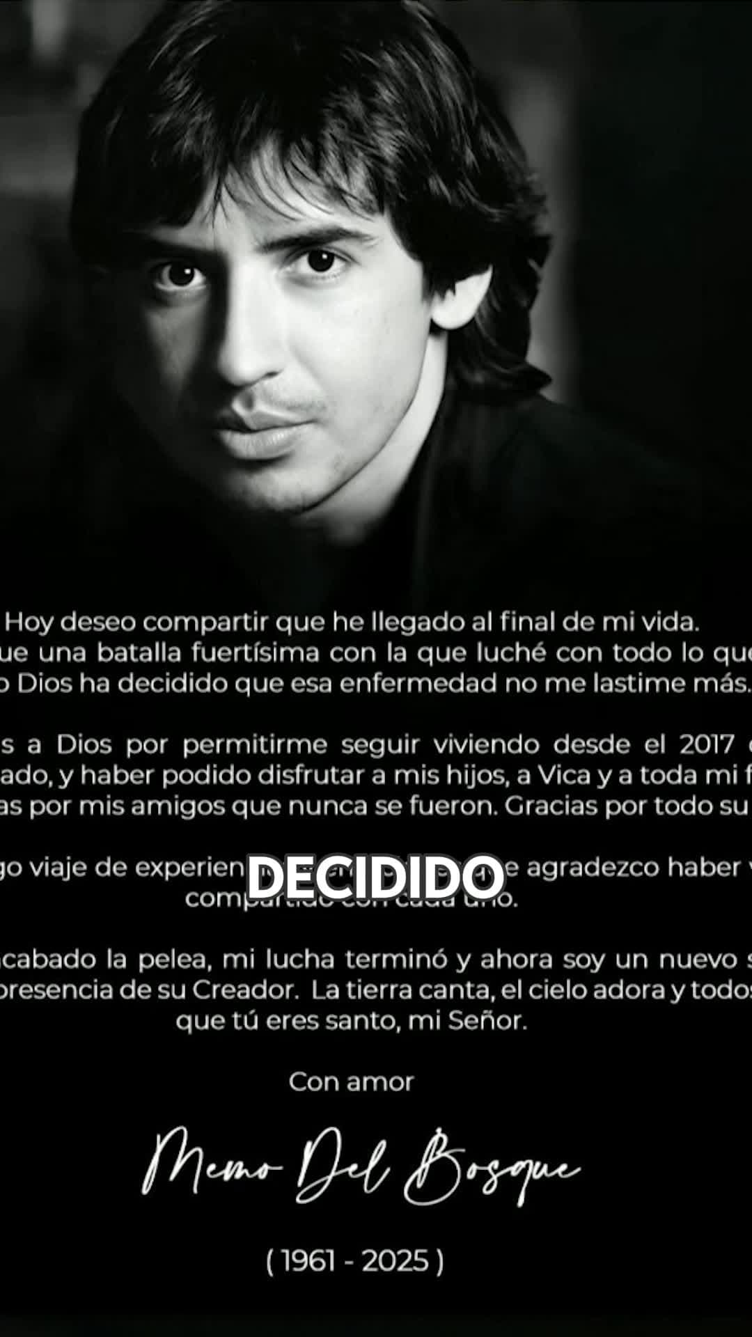 El productor Memo del Bosque se despidió con una emotiva carta en redes sociales