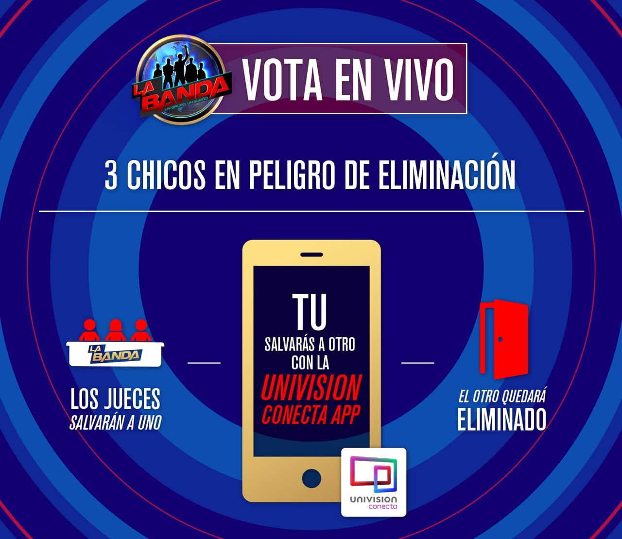 Los resultados de la votación dictarán quiénes se salvan y continúan al siguiente show en vivo como también se revelará quiénes son los tres chicos con el puntaje de votación más bajo. Los tres participantes con menor número de votos quedarán automáticamente en riesgo de ser eliminados. La buena noticia es que pueden salir de la zona de peligro si sus seguidores votan en vivo a través de Univision Conecta.