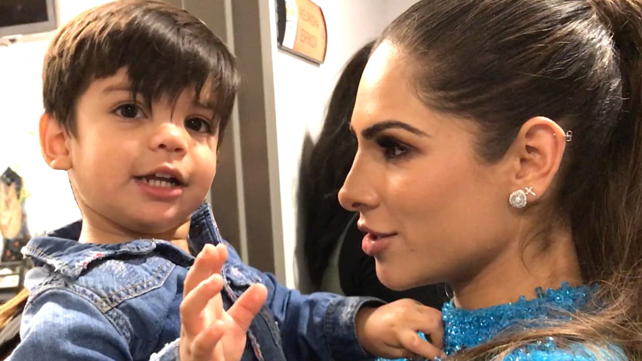 El hijo de Alejandra Espinoza, Matteo Marrero, se coló en el backstage de La Reina de la Canción y le dio un beso de felicitaciones a Sandra Padilla.