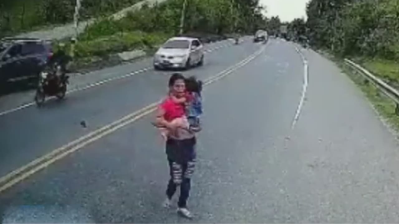 En Colombia una niña de cuatro años fue arrollada por dos motocicletas en una carretera de Antioquia, sorprendentemente la menor no tuvo lesiones durante el percance.