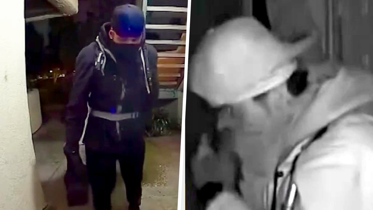 El ladrón fue grabado por las cámaras de vigilancia del hogar en San Bernardino, California, que capturaron el momento en el que el delincuente entra a la vivienda, roba dinero y joyas, y se para justo a unos centímetros de la pareja mientras ellos dormían. La policía difundió las imágenes en caso de que haya otras víctimas.
