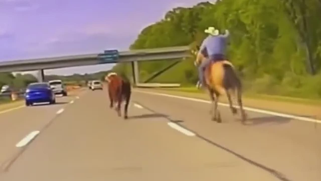 Un vaquero tuvo que perseguir a una vaca que invadió una autopista de Michigan, el animal pudo ser controlado después de una persecución en la que también intervino la policía; afortunadamente nadie resultó lesionado.