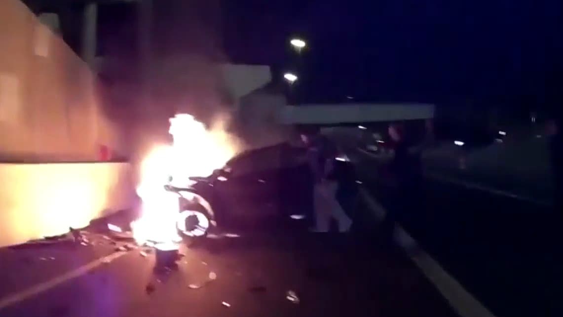 La cámara corporal de un agente captó el momento en que un conductor fue rescatado de las llamas luego de que su auto comenzara a incendiarse tras haber chocado por manejar a exceso de velocidad en Cincinnati.