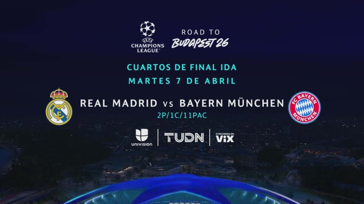 El Real Madrid defiende su invicto histórico ante el Bayern Munich en una vibrante jornada de la Champions League. Con figuras como Kylian Mbappé y Vinícius Júnior listas para la acción, el conjunto de Álvaro Arbeloa busca mantener su dominio sobre el gigante bávaro en la capital española. Sigue cada detalle de los cuartos de final a través de Univisión, TUDN y ViX, donde serás testigo del torneo de clubes más importante del mundo y el regreso de los grandes astros al campo.