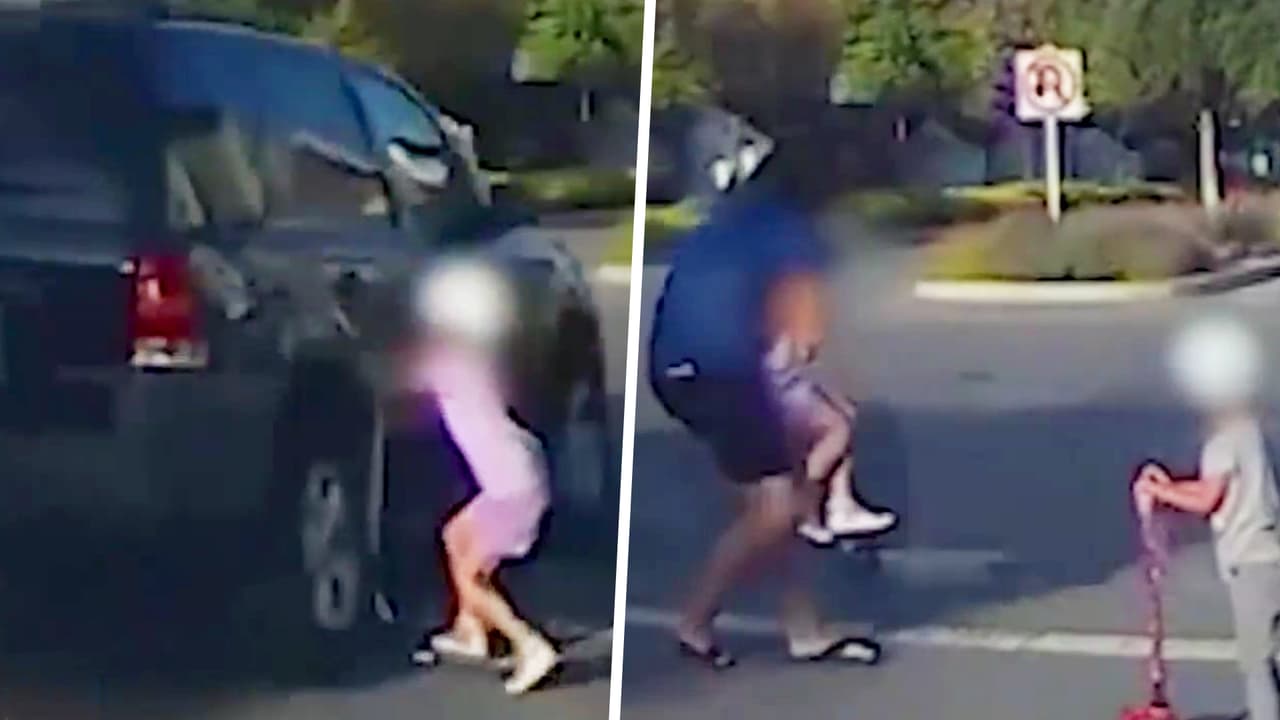 Una cámara de seguridad en California captó el momento en que una madre y sus dos hijas, que iban a bordo de dos scooters, intentaban cruzar una calle cuando un conductor no se detuvo y la llanta trasera del vehículo golpeó a una de las pequeñas.