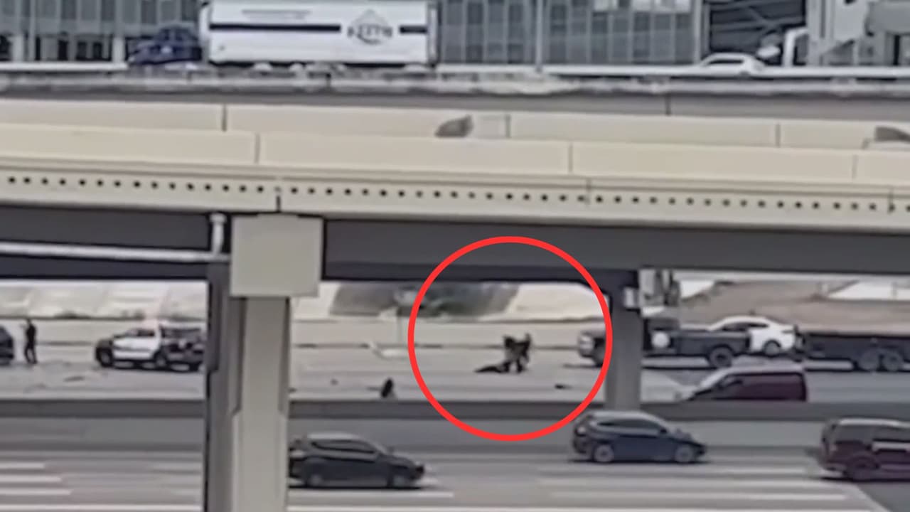 En cámaras de video quedó registrado el momento en el que un hombre expone su vida para salvar a un oficial durante un tiroteo en medio de una autopista en Texas. El hombre arrastró al oficial, que fue herido en una pierna, mientras el sospechoso seguía disparando.