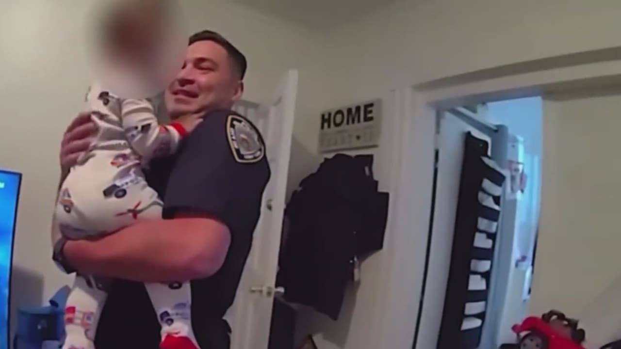 El momento en que dos policías rescatan a un bebé que había dejado de respirar mientras dormía