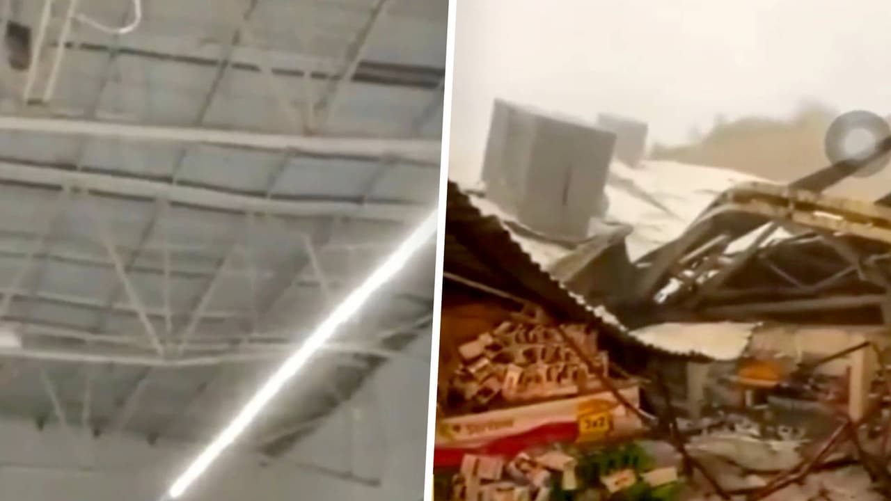 En video quedó grabado el momento en que, luego de la gran caída de granizo en la Ciudad de México este domingo, el techo de un supermercado colapsó ante la mirada de varias personas que se encontraban dentro.