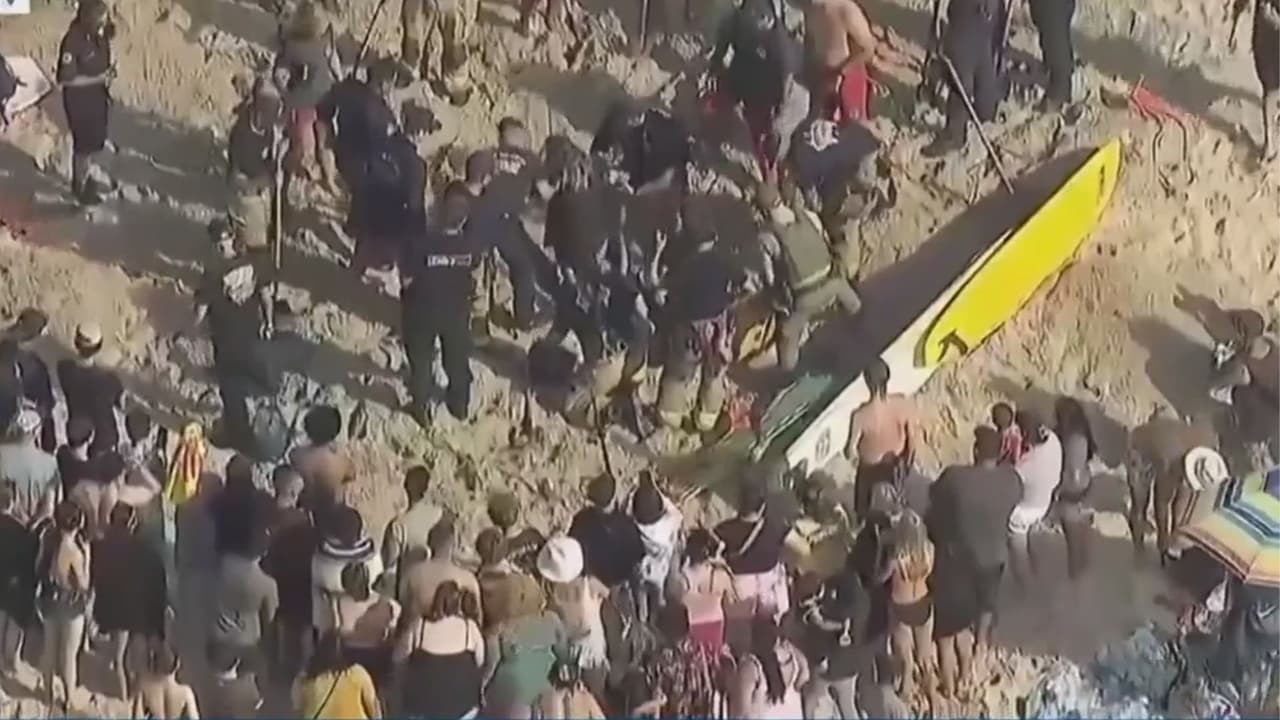 El momento en que rescatan a una joven que estaba atrapada bajo 6 pies de arena en una playa en California
