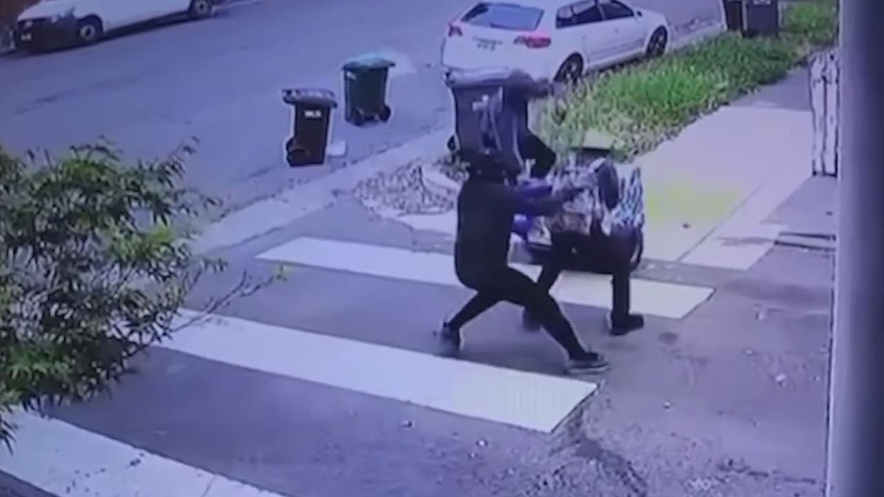 El momento en que tres hombres golpean y asaltan a un paletero hispano en California