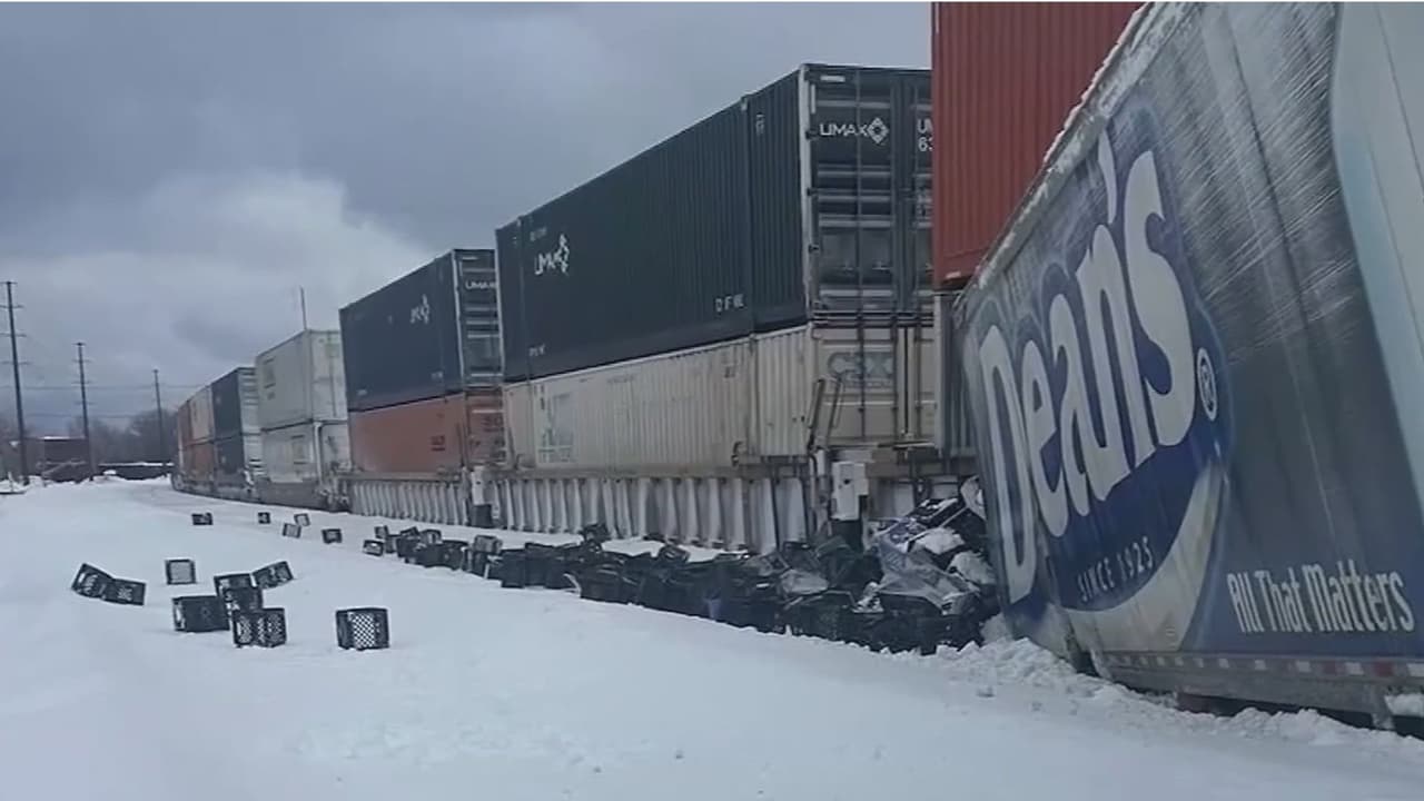 El conductor de un camión de una empresa lechera se quedó atascado en las vías del tren, en Pensilvania, debido a un gran acumulado de nieve en la zona. Por fortuna, el hombre logró salir a tiempo del camión antes de que el tren lo chocara.