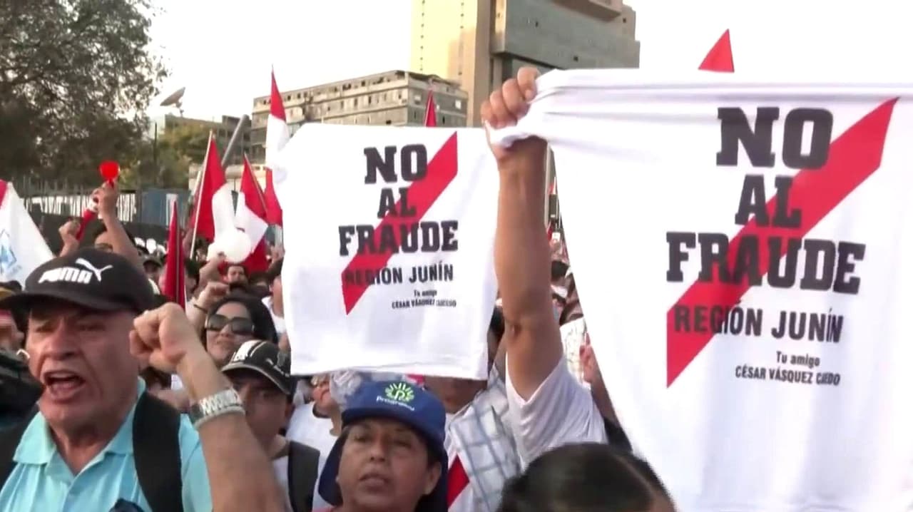 denuncia un presunto fraude electoral y exige nuevos comicios para mayo. Mientras los simpatizantes protestan en las calles de Lima,