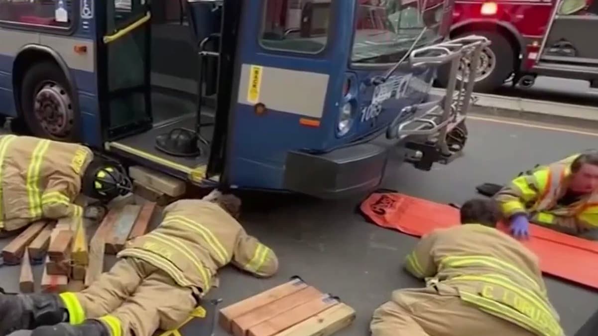 En Connecticut, una mujer, de 28 años de edad, quedó atrapada debajo de un autobús luego de que intentara cruzar la calle con la luz de paso de peatones iluminada. Rescatistas acudieron al lugar de los hechos para sacarla rápidamente y llevarla al hospital de donde ya fue dada de alta al presentar heridas superficiales y leves.
