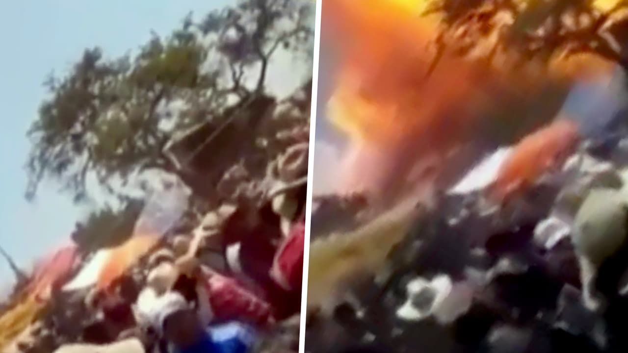 Las imágenes captaron el momento justo del estallido que ocurrió este sábado en la localidad de San Juan Tepa durante una fiesta patronal, dejando a 20 lesionados, tres de los cuales tuvieron que ser trasladados en helicóptero al hospital. Hasta el momento, reportan seis heridos en estado grave.
