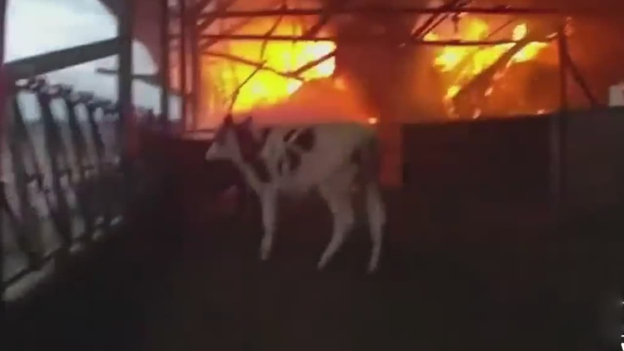 En video: policía pone en riesgo su vida para salvar a unas vacas de un incendio