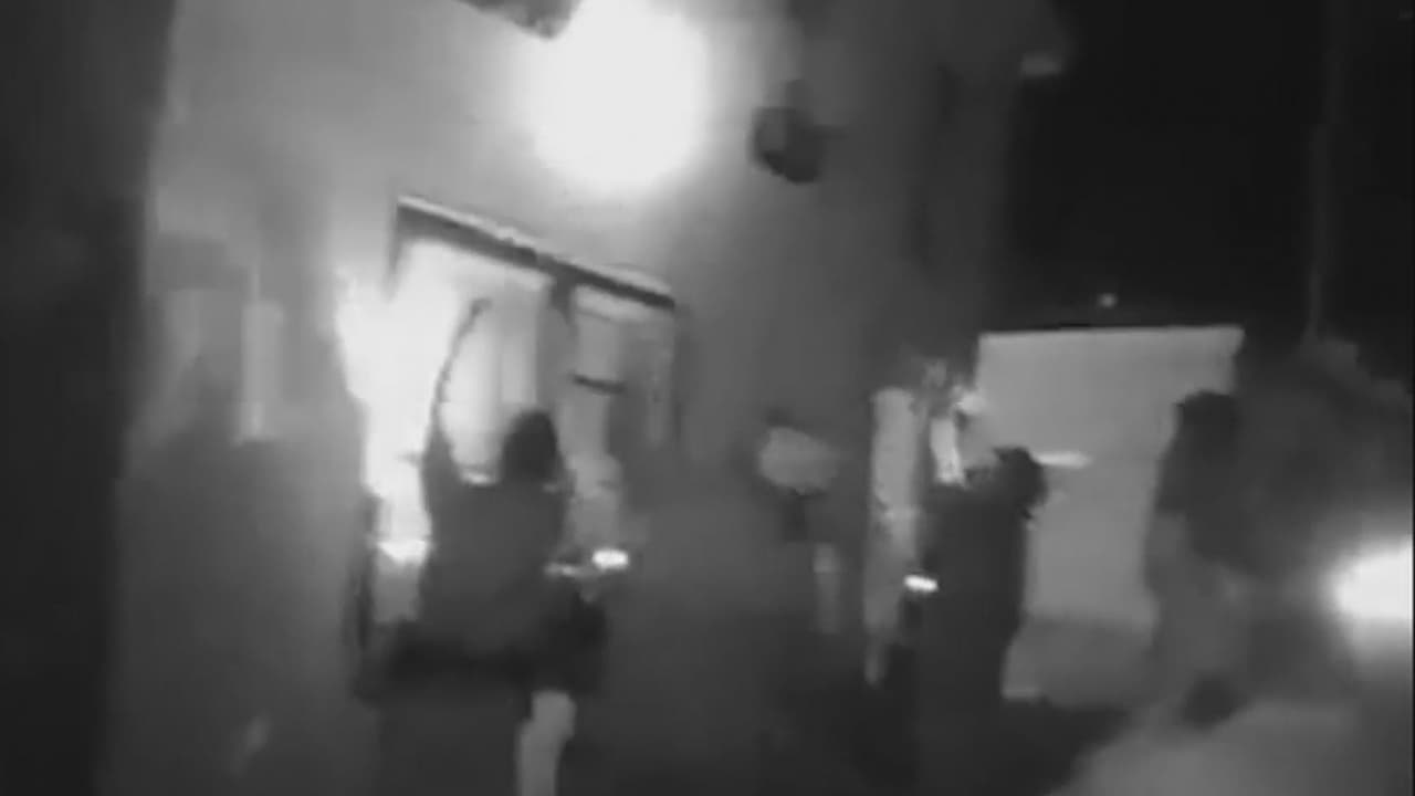 En video quedó grabado el momento en que una madre y sus hijos son rescatados por varios policías y vecinos cuando su departamento se incendió. La mujer y los niños saltaron desde el segundo piso a los brazos de sus rescatistas.