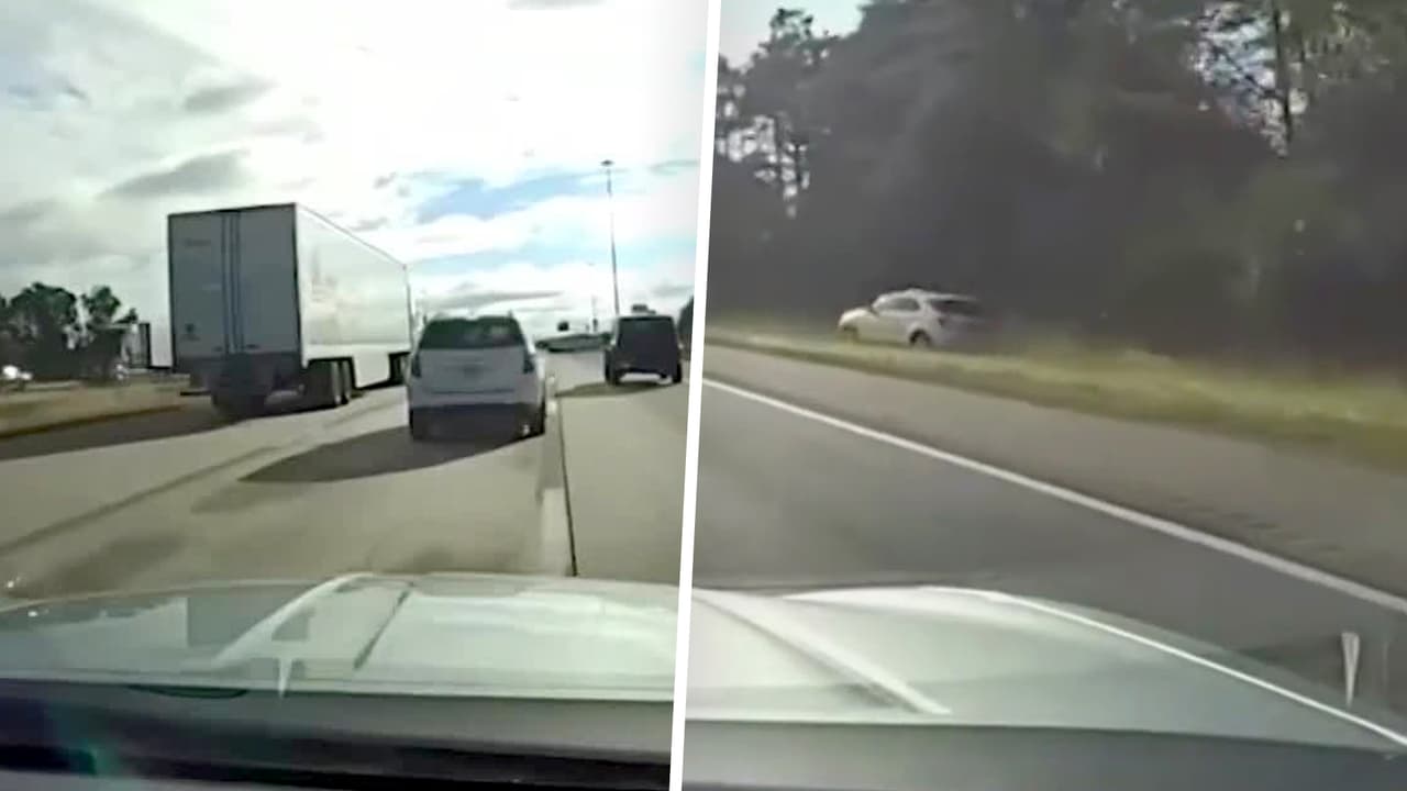 Graban momento en el que un hombre que manejaba con sobredosis se sale de la carretera