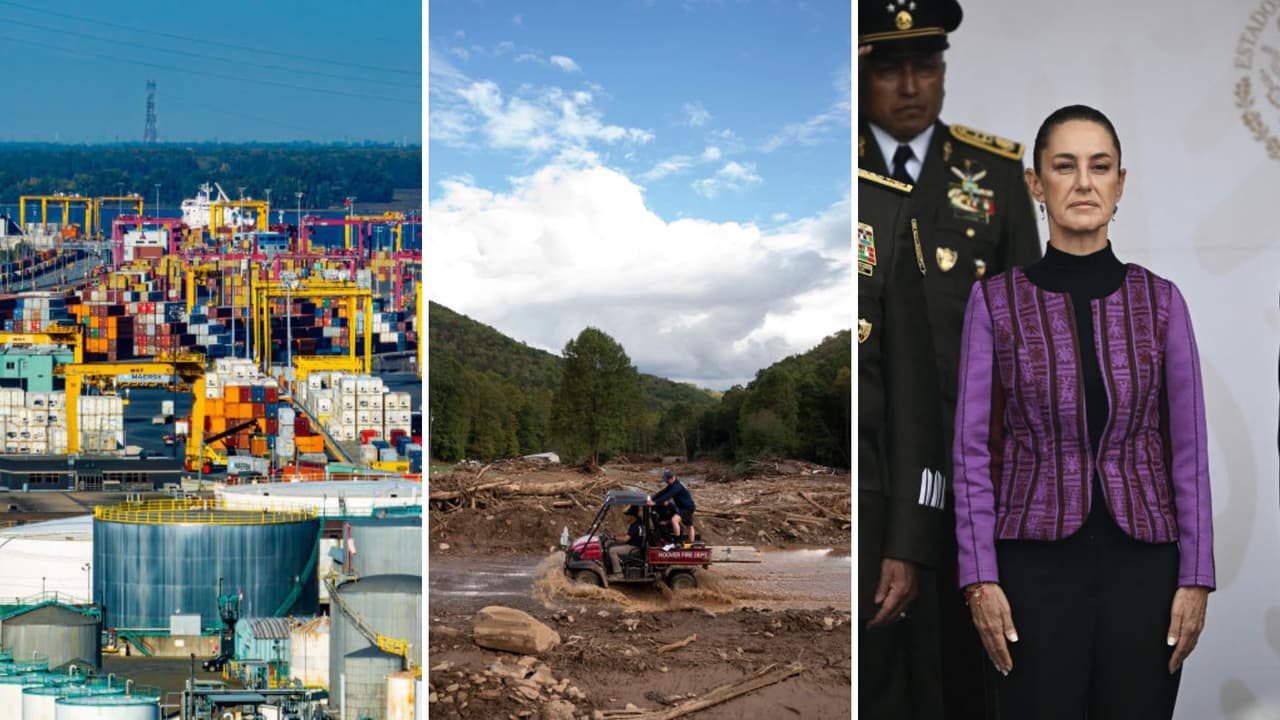 Trabajadores de 14 puertos se declaran en huelga; exigen mejoras salariales y la prohibición de la automatización. En otras noticias, continúa aumentando la cifra de fallecidos por el paso de Helene y 600 personas están desaparecidas. Finalmente, Claudia Sheinbaum se convierte este martes en la primera mujer presidenta de México.