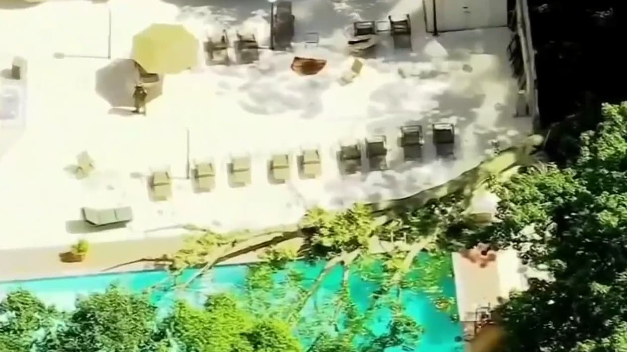 En Nueva York, una mujer, de 56 años, falleció luego de que un árbol le cayera encima cuando se encontraba nadando en una piscina; otra señora, de 72 años, fue trasladada al hospital en estado crítico, pero estable. Las autoridades aún investigan qué fue lo que causó este incidente.