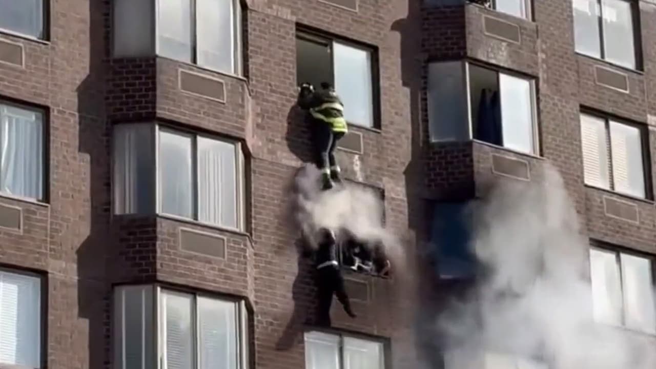 Las imágenes muestran al equipo de bomberos descendiendo de un piso más alto para salvar la vida de la mujer y otra persona, quienes se encontraban entre las llamas y el humo. Según la primera hipótesis, el incendio, que ocurrió en un edificio de Manhattan, se habría provocado por una batería de ion de litio. Puedes ver más noticias gratis en el canal Noticias Univision 24/7 en ViX