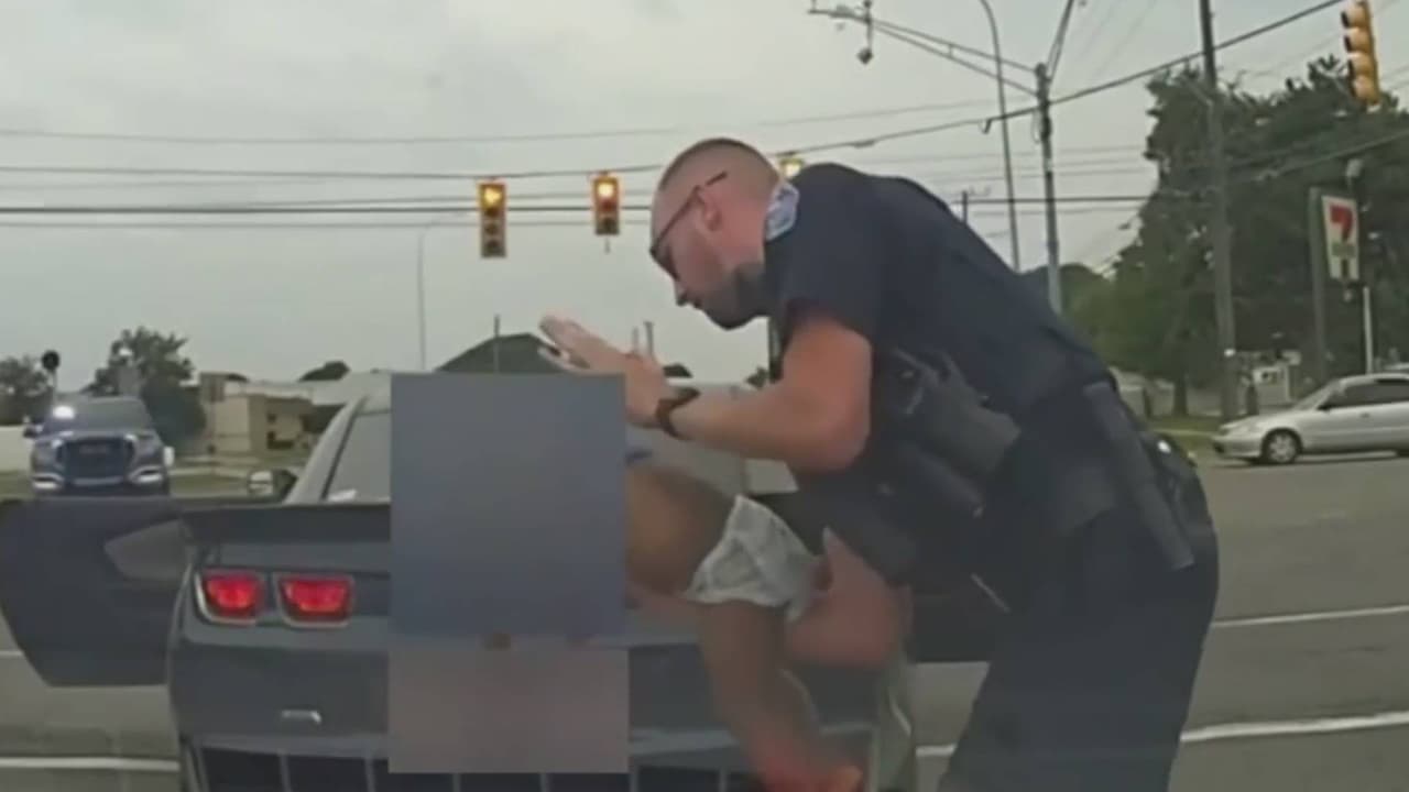En un video quedó registrado el momento en el que el agente levanta al bebé para tratar de salvarle la vida. La madre iba de camino al hospital cuando el agente la detuvo para ponerle una multa por exceso de velocidad y en ese momento se produjo la heroica acción.