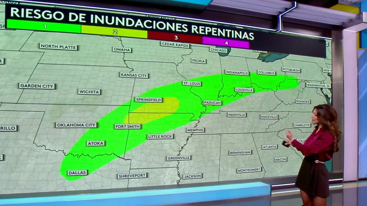 menaza latente de tormentas severas que podrían azotar desde Texas hasta Ohio. Las autoridades vigilan de cerca un sistema frontal que incrementa el riesgo de tornados, ráfagas de