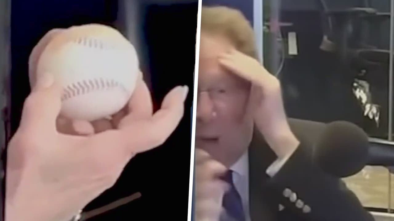 John Sterling, el legendario locutor de los Yankees fue golpeado en la cara por una pelota de foul en plena transmisión de un partido, a pesar del fuerte golpe, el hombre de 84 años continuó narrando el encuentro sin perder el ritmo de lo que ocurría en el campo.