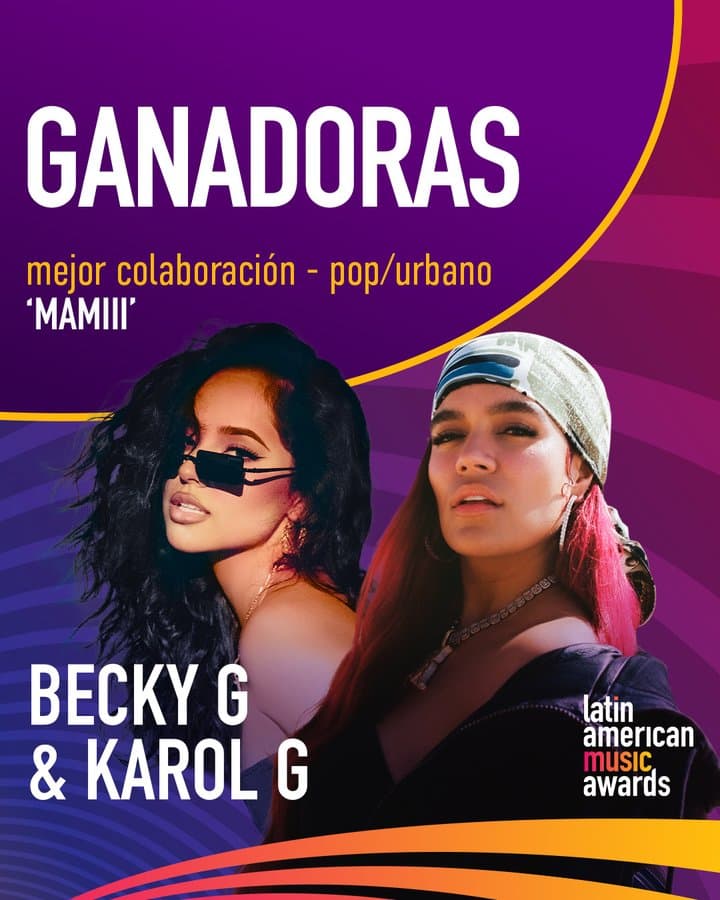 El premio Mejor Colaboración – Pop/Urbano se lo llevan a casa Becky G y Karol G por su canción ‘Mamiii’. ¡No cabe duda que hicieron una excelente mancuerna!