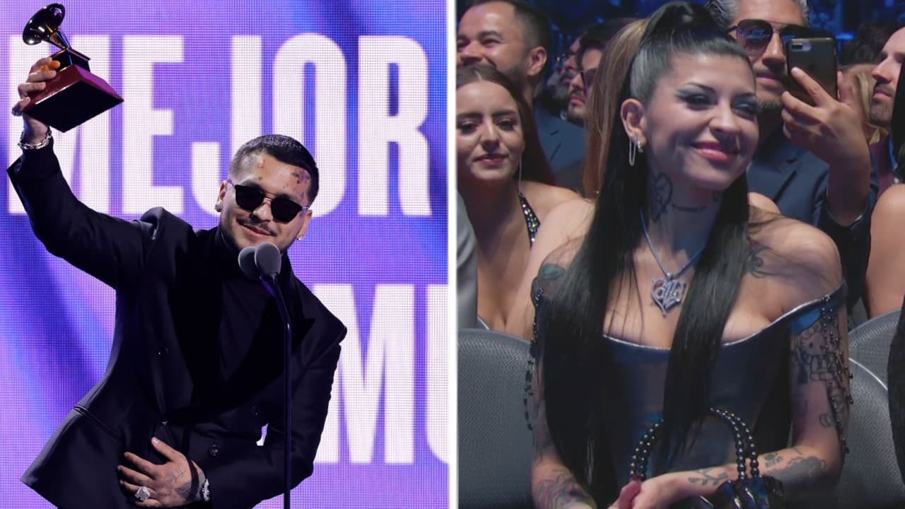 Nodal ganó la categoría de Mejor Álbum de Música Ranchera/Mariachi y al recibir su gramófono le hizo un especial acontecimiento a su novia Cazzu, quien lo veía desde la primera fila.