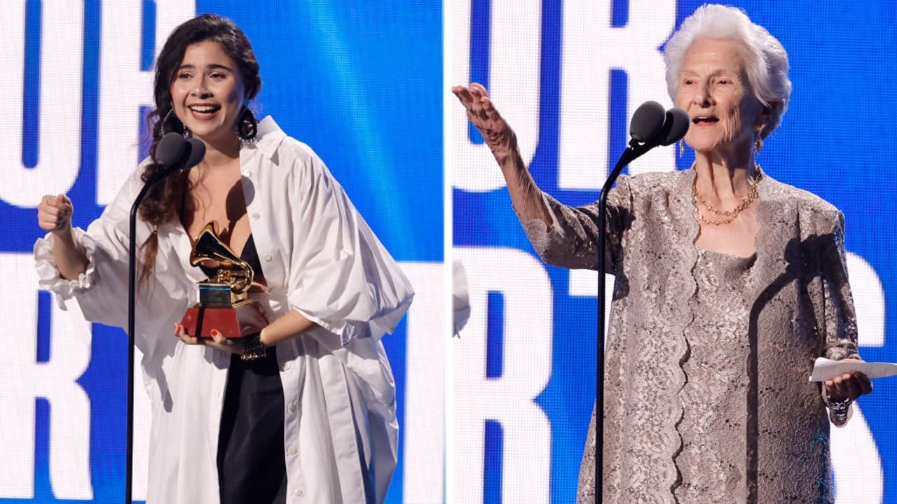 La primera en dar su discurso fue la mexicana Silvana Estrada, quien resaltó que en la categoría predominaron las mujeres: "Este premio es de todas y más aún porque tengo aquí a esta señora maravillosa que desde que la vi me sacó las lágrimas porque la nueva música, la vieja música, lo que existe es la honestidad, lo que existe es el trabajo, lo que existe es representar para las niñas que vienen, que sepan que vale la pena soñar, luchar y trabajar, así que muchísimas gracias".