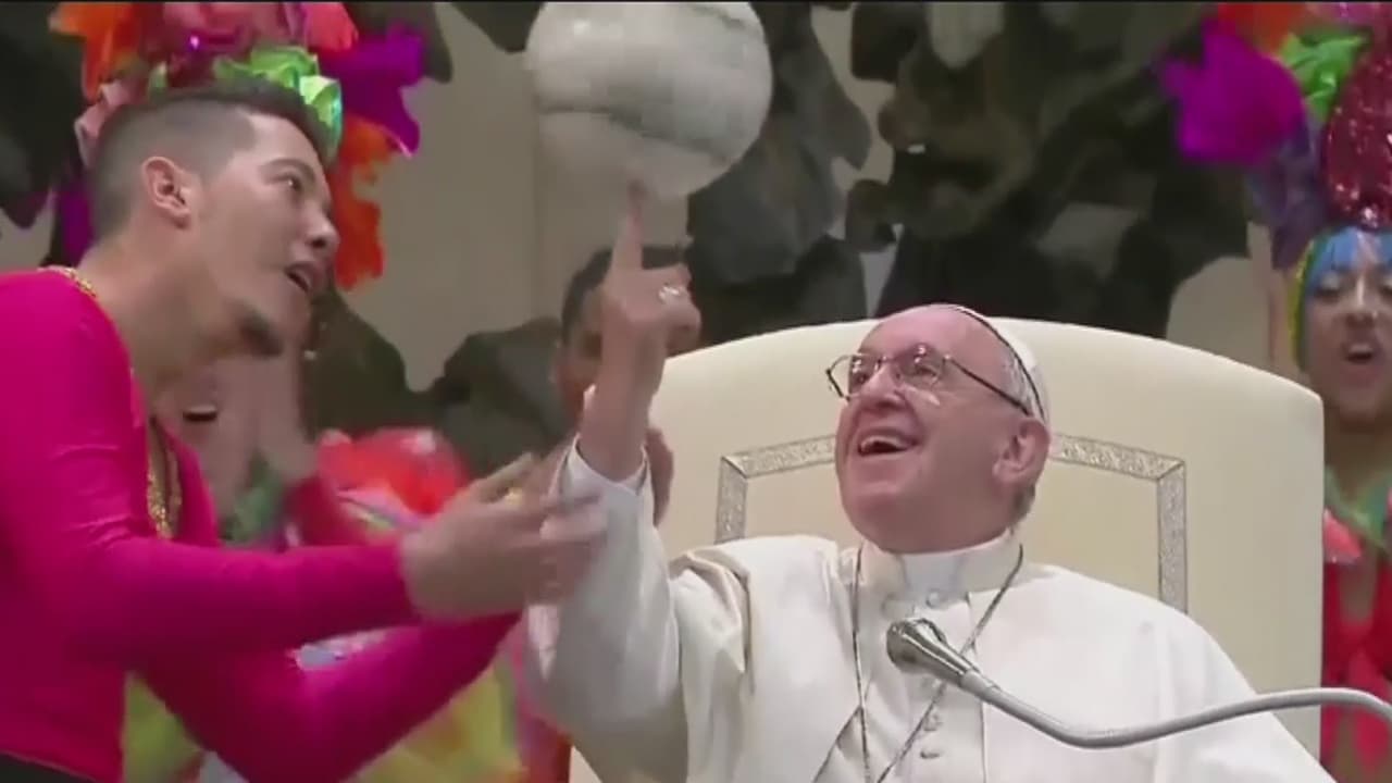 El Sumo Pontífice demostró su calidad al sostener la pelota con su dedo índice en la presentación, en Roma, del Circo Nacional Cubano. Aquí el momento.