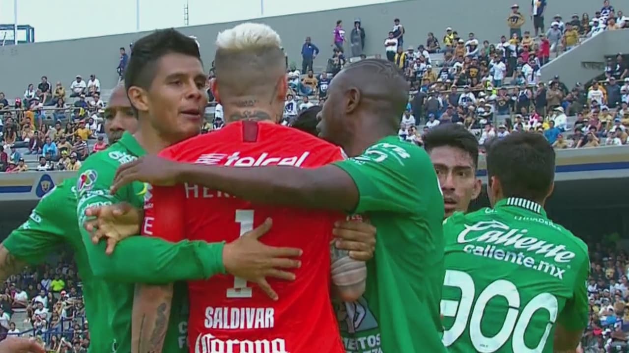 El club Esmeralda demostró una vez más su creatividad en las redes sociales. Esta vez la víctima fue el arquero de Pumas, quien aparece en una foto como si estuviera celebrando uno de los goles que le convirtió León. Aquí la publicación.